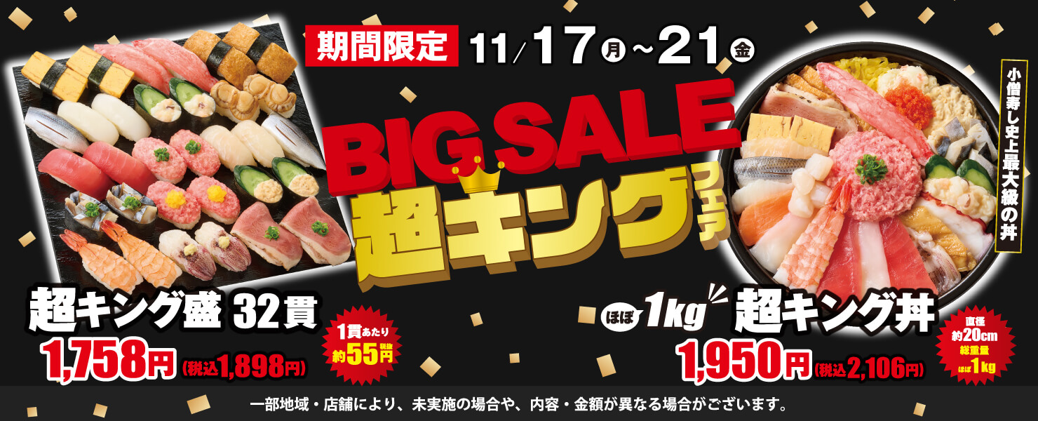 2025年11月17日(月)~平日限定!BIG SALE『超キング』フェア(店舗により未実施の場合がございます)
